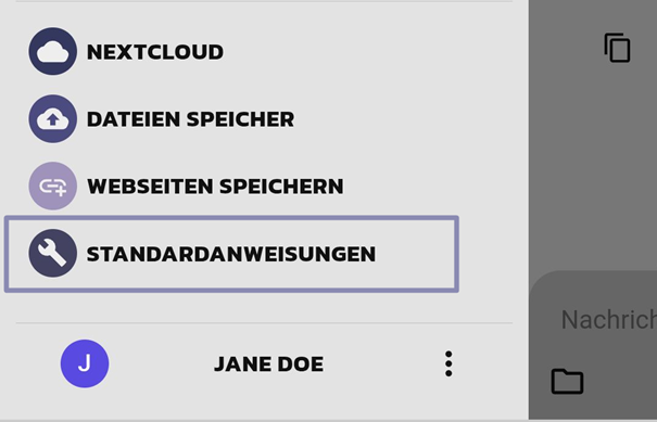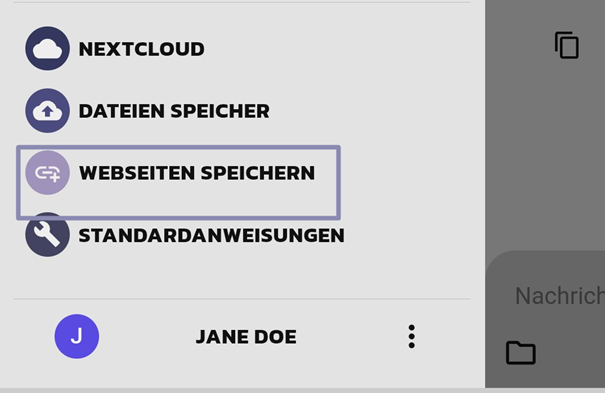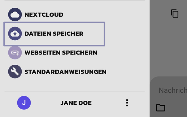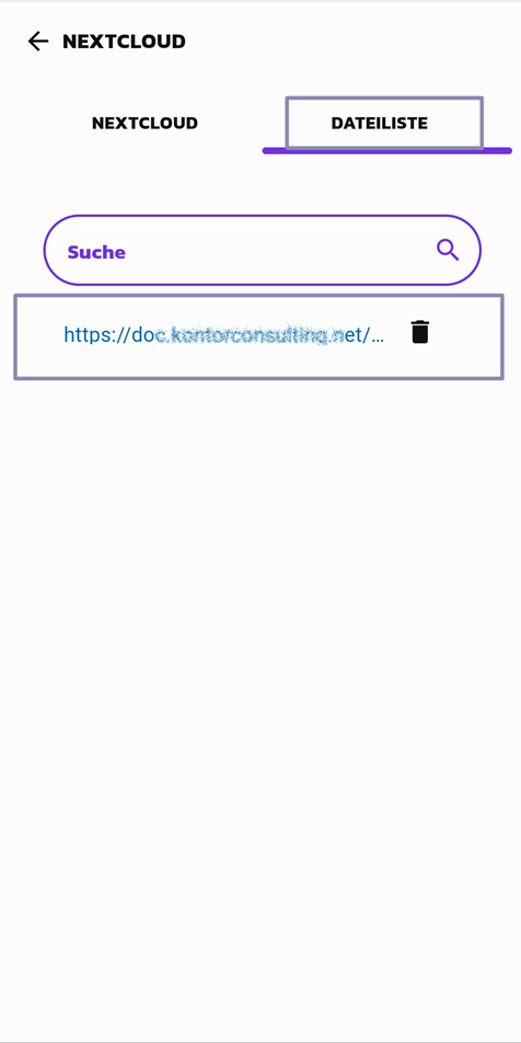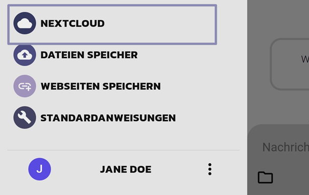 Durch Betätigen der Schaltfläche „Nextcloud“ öffnet sich das entsprechende Dialogfenster.