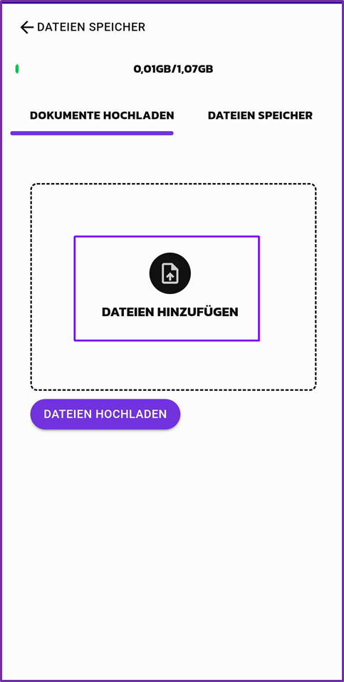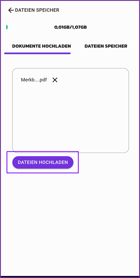 Das oder die ausgewählten Dokument(e) können mit Betätigung der Schaltfläche „Dateien hochladen“ hochgeladen werden.