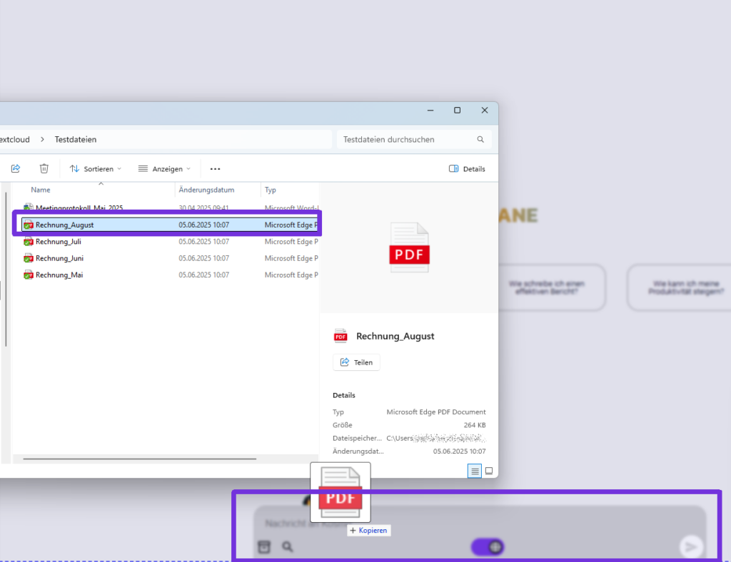 Per Drag & Drop können Dateien direkt im Eingabefeld hochgeladen werden.