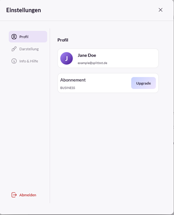 - Das Profil des aktuellen Nutzers, also der Benutzername und das Abonnement